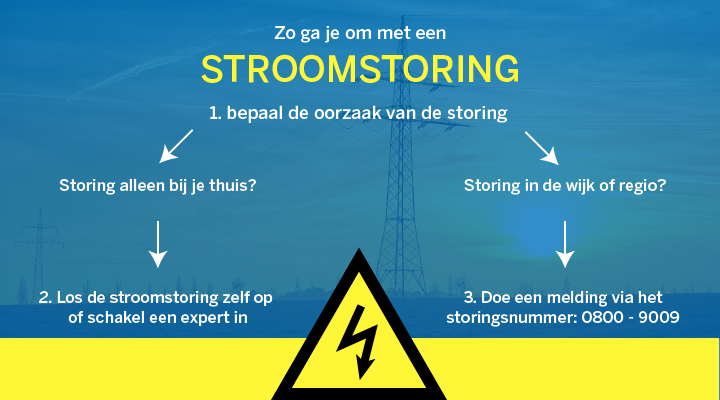 Heb je te maken met een lokale of regionale stroomstoring? Dan kun je zelf weinig doen, behalve melding maken.