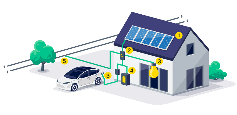 Tegenwoordig kunnen ook steeds meer elektrische voertuigen fungeren als thuisbatterij (vehicle to grid). Dat scheelt in de aanschafkosten. Bovendien is de accucapaciteit van elektrische auto’s een stuk groter dan van de thuisaccu.